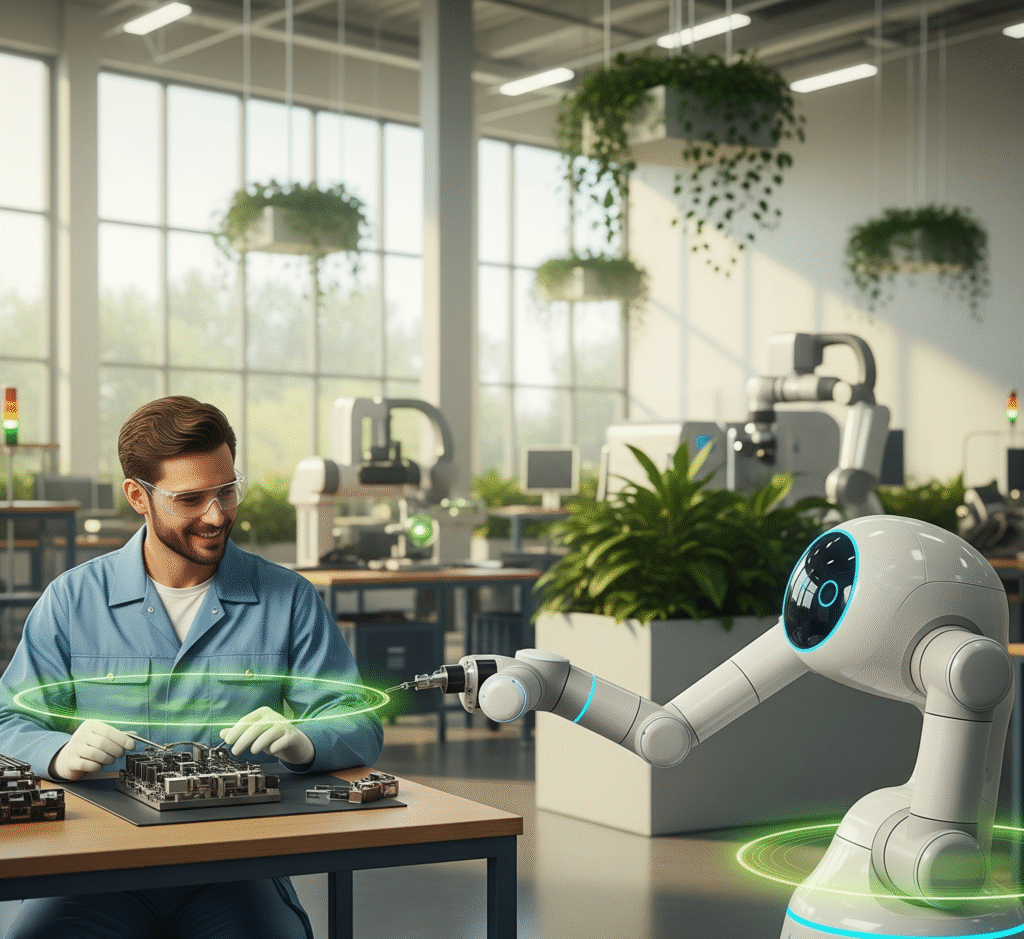 Se a Indústria 4.0 era sobre tecnologia, a Indústria 5.0 é sobre propósito. É uma nova fase focada na colaboração entre humanos e máquinas, onde a sustentabilidade deixa de ser uma opção para se tornar um pilar estratégico. Aqui, a tecnologia não substitui as pessoas, mas sim potencia as suas capacidades criativas e de resolução de problemas.